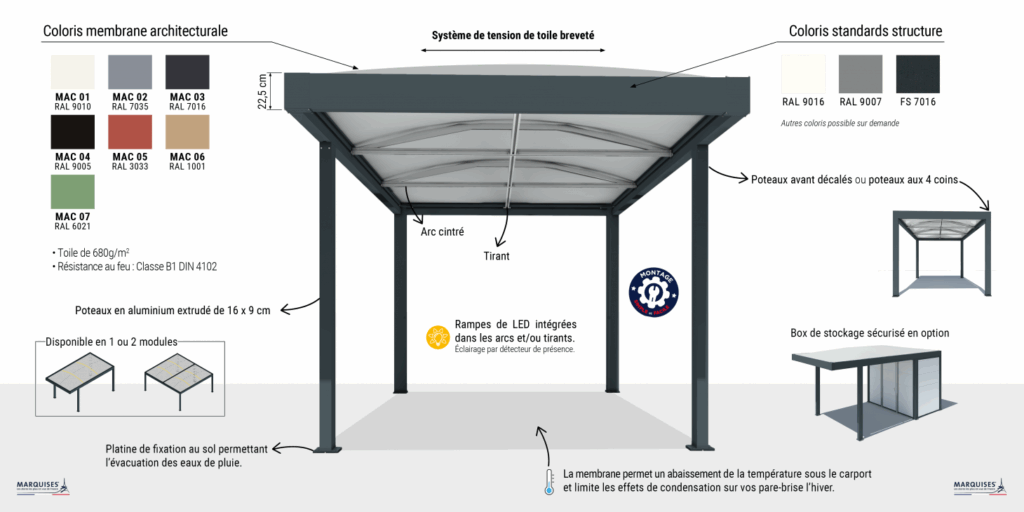 Abritez et protégez vos véhicules avec la nouvelle gamme de CARPORTS sur mesure imaginée par Marquises. Sa structure fine et élégante s’adaptera à tous les types d’habitats et d’environnements.